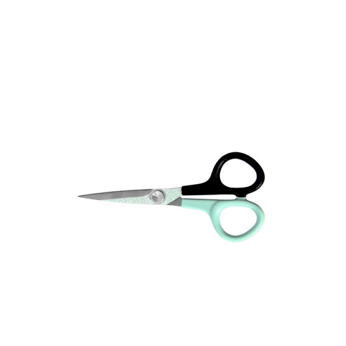 Dvoubarevné nylonové rukojeti, čepel oblečená do květinových motivů a akvamarínový odstín barvy pro rozveselení pracujících švadlen, ale také lidí, kteří milují barevné a zdobené předměty. Druhá rukojeť zůstává přísně černá, aby připomínala, že se v každém případě stále jedná o profesionální nůžky.