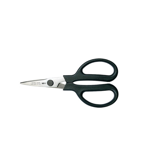 Víceúčelové nůžky s vysokým pákovým efektem a mikrozoubky na jedné čepeli, velikost 6" (16,5 cm). Čepele a šrouby ze speciální nerezové oceli s vysokým obsahem uhlíku kalené na 62 HRC, symetrická rukojeť z černého nylonu PA6.