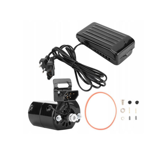 Kompletní sada motorek, držák, pedál se šňůrou, řemínek, šrouby. Přídavný motorek je určen jako náhrada za motorek - sadu TUR pro domácí šicí stroje: Singer, Veritas, Lucznik, Lada, Čajka, Podolsk aj. Není to originál, je to možná náhrada jediná na trhu.
