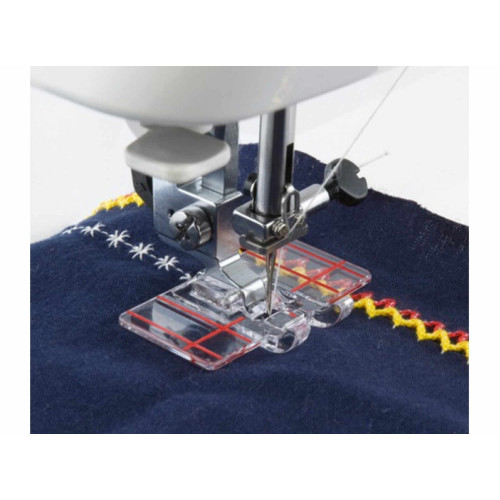 Patka prošívací (patchwork) je vhodná pro vytvoření vodorovných ozdobných švů na materiálu. Pomocné pravítko vám pomáhá udržet vzdálenost od okraje látky. Jedná se o alternativní levnější odzkoušenou verzi patky.