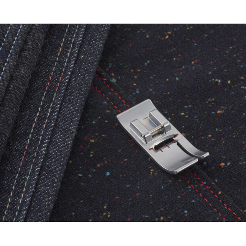 Dvouúrovňová patka pro prošívání okraje (pravá) je originální patka od výrobce Brother. Určená pro všechny typy strojů Brother. Tato patka vede různě vysoké vrstvy látky při prošívání - např. lemy, prošívání švů. Je zespodu přizpůsobená na různé výšky. Zvýšená zprava
