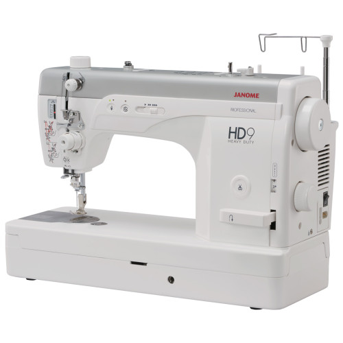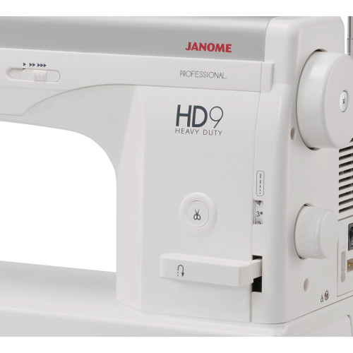 Šicí stroj Janome HD9 je nástupce stroje 1600Q-CP, který je vybaven novým, větším chapačem, který umožňuje použití o 40% větší cívky, nové 6bodové LED osvětlení a kromě toho byl vodič nití ve stroji přestavěn tak, že šití silnější nití je ještě snazší.