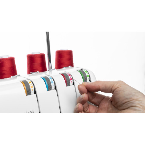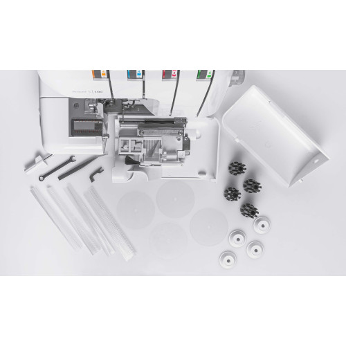 Husqvarna Viking Amber S100 je 4/3/2nitný overlock s 16 různými stehy, které vám pomohou dokončit jakýkoli projekt. Levý i pravý přední kryt se dají otevřít, což umožní úplný přístup k prostoru kličkařů, což velmi usnadňuje navlékání nití. Díky diferenciálnímu podávání získáte dokonale rovné švy - nedochází k natahování a deformaci úpletů ani ke krabatění jemnějších látek a lze jej použít i pro nabírání.
