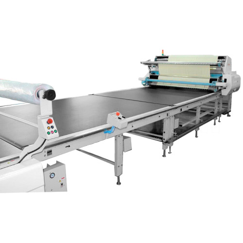 Stůl pro odkládání látky se zabudovaným transportem.