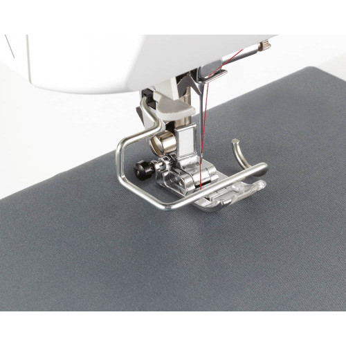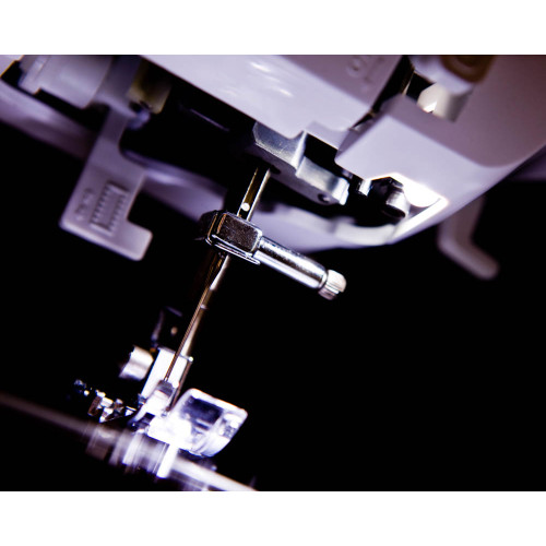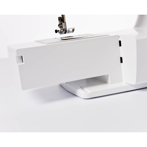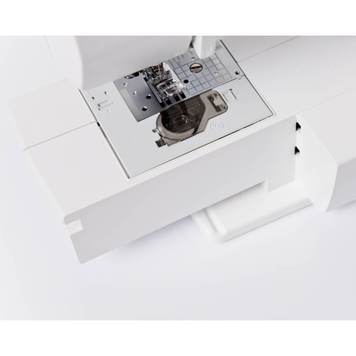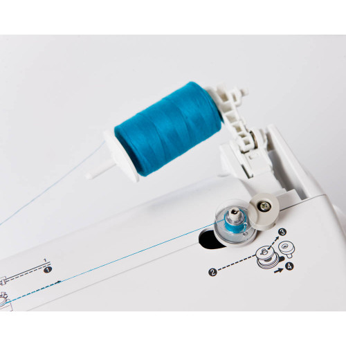 Stroj má moderní rotační chapač. Díky tomu je tichý, snadno se navléká i čistí. Navíc průhlednou krytkou vidíte, kolik nitě vám zůstává na cívce.