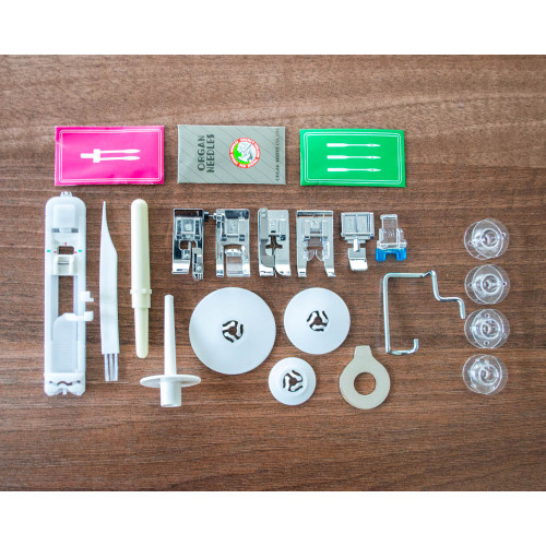 Má přehledný podsvícený displej a úsporné LED osvětlení pracovní plochy. Pomocí displeje jednoduše nastavíte délku stehu až do 5 mm a šířku stehu až do 7 mm. Zapošívat můžete pomocí tlačítka na hlavě stroje. Stroj nabízí 20 programů pro klasické i dekorativní stehy, z toho 3 druhy knoflíkových dírek v jednom kroku. Napětí horní nitě je ručně ovladatelné.