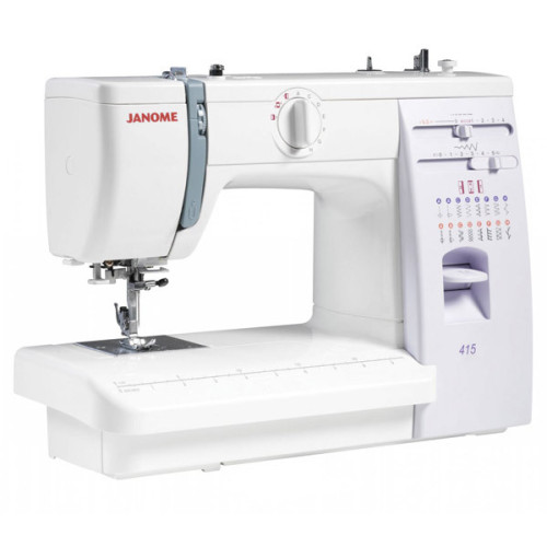 Šicí stroj Janome 415 je robustní mechanický šicí stroj vhodný pro šití silných tkanin, džínoviny a zároveň je vhodný i pro elastické a jemné materiály. Je nejen pro začátečníky, a to díky snadnému ovládání. Šicí stroj Janome 415 nemá jen sympatický zjev, ale také úžasnou sílu a pevnost. Kromě vnitřní kovové konstrukce má celé rameno stroje z pevné slitiny, což jej zcela odlišuje od strojů podobné třídy. Proto si také může dovolit prošít až 10 vrstev materiálu. Využití volného ramena a širokého příslušenství je samozřejmostí.