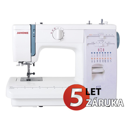 Janome 415 je nejdéle prodávaným modelem značky Janome a to nejen díky svému jednoduchému designu, ale také díky jedinečné konstrukci, kterou u žádné jiné značky nenajdete. Stroj disponuje litinovým ramenem, které zajistí dlouhou životnost, perfektní uchycení vnitřních mechanismů, a proto se nebojí dát na stroj speciální 5letou záruku. Pokud hledáte šicí stroj s dlouhou životností, u kterého nedochází k poškozování chapače, Janome 415 je ta správná volba. Jednoduchá údržba CB chapače, vysoká odolnost proti poškození při nárazu jehly a kvalitní převody mezi motorkem a hnacím ustrojím, činí ze šicího stroje Janome 415 nejlepšího pomocníka při domácím šití. Mnohaleté zkušenosti mechaniků potvrzují naše doporučení. Jedná se o nejméně poruchové stroje na trhu. V řadě se srovnatelnými modely jiných značek sice nepatří mezi nejlevnější, ale nejvyšší kvality docílíte pouze kvalitními materiály, které mají svou hodnotu.