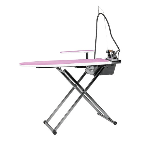 Pomocí ruční páky zespodu stolu lze optimálně nastavit výšku žehlící desky dle potřeby. Už vás nebudou bolet záda. Tlak páry 3-4 bary a konstantní pára až 120 g/min. umožňuje dosažení profesionálních výsledků.