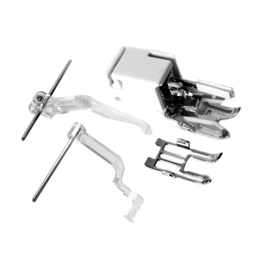 Ulehčuje lepší posun, kdy spodní podavač jde spolu s horní patkou, takže nedochází k prokluzu materiálu. Sada obsahuje jednotku pro rovnoměrné podávání, otevřenou patku, levý a pravý vodič. Pro stroje s horizontálním chapačem bez zabudovaného systému podávání AcuFeed.