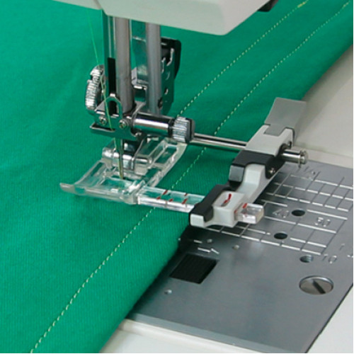 Patka s nastavitelným vodičem. Vhodná pro šití 5/8" a 1/2" švů, maximální vzdálenost je 1". Je určena pro všechny domácí stroje s rotačním chapačem (Janome, Brother, Elna, Toyota, Husqvarna atd.).