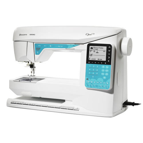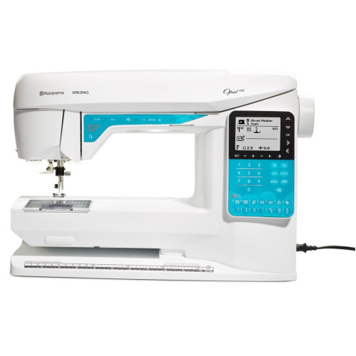 Šicí stroj Husqvarna Opal 650 je elektronický šicí stroj s výhodnou cenou. Moderní grafický displej s tlačítky umožňuje pohodlnou volbu stehu a změnu nastavení. 420 druhů stehů včetně ozdobných a dekoračních a včetně 3 typů abecedy, 7 typů automatické senzorové knoflíkové dírky a velká pracovní plocha - mezi jehlou a tělem stroje je 20 cm, Opal 650 má řadu užitečných elektronických funkcí - umožňuje šití bez použít pedál pomocí tlačítka Start/Stop, možnost plynulého nastavení rychlosti šití, možnost polohování jehly nahoře/dole, tlačítko zpětné šití a možnost uložení stehu do paměti stroje. Pracovní plocha je osvětlená 3 LED diodami, šicí stroj má horizontální rotační chapač, kdy se spodní cívka nasazuje lehce shora, stroj se lehce čistí a při šití má tichý chod.