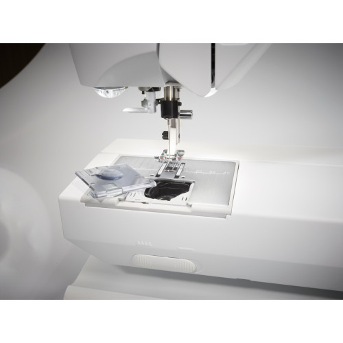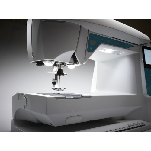 Velká pracovní plocha, která řadí tento stroj do kategorie XL strojů, kdy vzdálenost mezi jehlou a ramenem je 20 cm, což je oproti běžným strojů zásadní rozdíl.