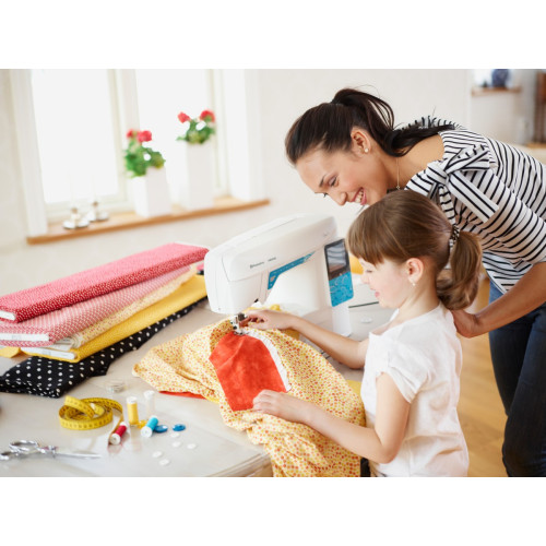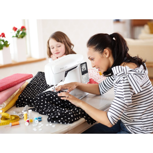 Grafický displej - velký a přehledný - výběr stehu, nastavení šířky a délky stehu, polohy jehly, rychlosti šití, možnost zrcadlení, doporučení jehly (síla, typ), nitě, vhodné patky a přítlaku patky. V případě specifického šití je vám doporučen stabilizátor.