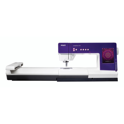 Šicí a vyšívací stroj Pfaff Creative 4.5 je kombinací šicího i vyšívacího stroje s moderním dotykovým displejem. Tento velmi bohatě vybavený stroj nabízí 480 šicích programů, 5 typů abecedy, 270 vyšívacích vzorů, automatický odstřih nitě i velkou vyšívací plochu až 360 x 350 mm (vyšívací modul lze dokoupit, není součástí). Creative 4.5 dále umožňuje vytvářet vlastní stehy pomocí dotykového displeje s následným uložením do paměti stroje. Vzory i stehy lze jednoduše otáčet v krocích i po 1 stupni. Novinkou je základní funkce Shape Creator, která umožňuje kombinovat dekorativní stehy a další prvky k snadnému vytvoření velmi unikátních designů. Oproti strojům Creative Performance a Creative Sensation je Creative 4.5 ve vyšívání v průměru až o 30% rychlejší.