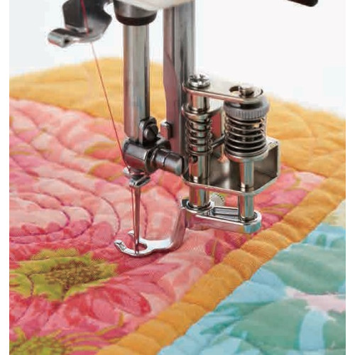 Tento set obsahuje speciální patky pro quiltování. Díky odpruženému držáku zajišťuje perfektní posun..