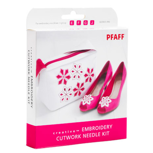 Sada speciálních jehel na cutwork pro vyšívací stroje Pfaff. Po vyzvání stroje stačí jen vyměnit jehlu za správnou barvu, stroj pak automaticky vyřízne váš vzor.