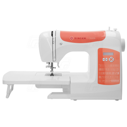 Šicí stroj Singer C5205 - CR (Coral) je elektronický šicí stroj s displejem pro domácí šití. Stroj je vybaven kovovým kyvným chapačem, 80 druhy stehů, 6 typy automatické knoflíkové dírky i automatickým navlékačem jehly. Stehy, délka a šířka stehu se regulují jednoduše pomocí tlačítek. Praktické volné rameno umožňuje pohodlné šití i kruhových tvarů. Kvalitní LED osvětlení osvětluje pracovní plochu bez stínů. Pevný kovový rám zaručuje stabilitu při šití. Součástí je praktický přídavný stolek rozšiřující pracovní plochu.