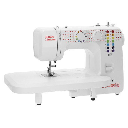 Šicí stroj Janome Juno J15 je robustní mechanický šicí stroj vhodný pro šití silných tkanin, džínovi..