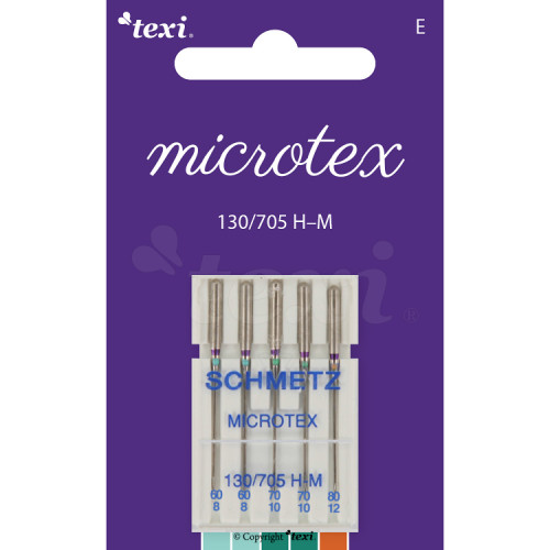 S velmi tenkým ostrým hrotem pro snadnější propíchnutí velmi jemných nebo hustě tkaných látek. K přesnému prošívání okrajů, také pro hedvábí, mikrovlákna, povrstvené materiály, fólie a umělou kůži.