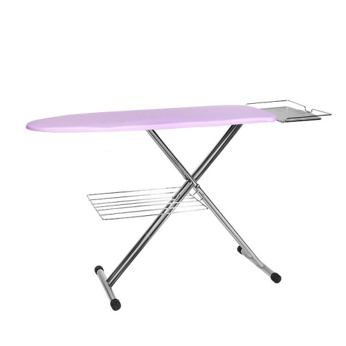 Skládací žehlicí prkno pochromované (díky chromování nedochází po čase k zreznutí prkna a špinění materiálu) s plynulým nastavením výšky. Vybaveno policí pro odložení žehličky nebo malého parního vyvíječe.