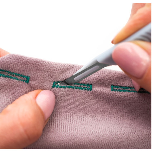 Texi 4083 je ostrý nůž, skalpel pro řezání otvorů knoflíkových dírek, které vyšijete na vašem šicím stroji. Díky velmi ostré 1 cm čepeli můžeme materiál přesně proříznout.