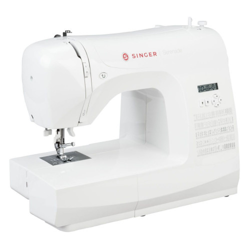 Šicí stroj Singer Serenade C520L je elektronický šicí stroj s displejem pro domácí šití. Stroj je vybaven kovovým kyvným chapačem, 100 druhy stehů, 6 typy automatické knoflíkové dírky i automatickým navlékačem jehly. Stehy, délka a šířka stehu se regulují jednoduše pomocí tlačítek. Praktické volné rameno umožňuje pohodlné šití i kruhových tvarů. Kvalitní LED osvětlení osvětluje pracovní plochu bez stínů. Pevný kovový rám zaručuje stabilitu při šití. Součástí je praktický přídavný stolek rozšiřující pracovní plochu.