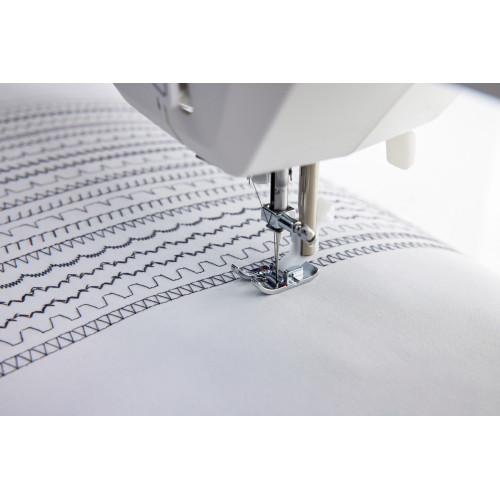 Šicí stroj má v nabídce 23 různých stehů - základních, overlockových, strečových a dekorativních, má horizontální rotační chapač kdy se spodní cívka nasazuje lehce shora, stroj se lehce čistí a při šití má tichý chod, ořez nitě na bočním krytu stroje, knoflíkovou dírku šitou ve 4 krocích, nastavitelný přítlak patky, rychloupínací systém výměny šicích patek MATIC - patku vyměníte během okamžiku a bez šroubování.