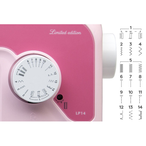 Šicí stroj Brother LP14 - limitovaná edice - je jednoduchý mechanický domácí šicí stroj určený jak pro švadleny, tak i pro malé švadlenky. Malé švadlenky v náctiletém věku (14+), hlavně jejich rodiče, ocení praktický chránič prstů. Jedná se však již o plnohodnotný šicí stroj, jednoduchý na obsluhu, vybavený je navíc zmíněným chráničem prstů proti poranění, vložení prstů dětí. Má 14 typů rovných a klikatých stehů, 4krokové obšívání knoflíkové dírky, zpětný chod, volné rameno a LED osvětlení pracovní plochy. Tento šicí stroj má rotační chapač, což je v této cenové kategorii ojedinělé. Rotační chapač znamená, že se cívka spodní nitě nasazuje shora. Chapač se lépe čistí, stroj je tichý a okénkem vidíte navíc i kolik nitě na cívce zbývá. Ideální dárek pro malé módní návrhářky! Navíc je k šicímu stroji dodáváno i instruktážní video.