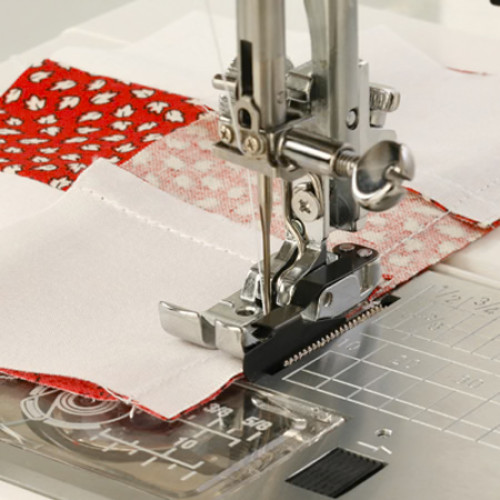 Patka s vodičem 1/4" (6,35 mm) pro šicí stroje Janome. Díky této patce perfektně sešijete více vrstev materiálu rovným stehem. Patka kopíruje okraj materiálu, vynikající pro vycpávané materiály. Je velmi populární v technice patchwork. Nemusíte používat rozměry ze stehové desky. Patka je určena pro domácí šicí stroje s rotačním chapačem (Brother, Elna, Toyota, Husqvarna atd.).