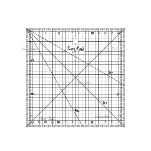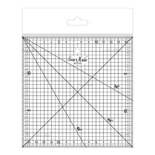 Pravítko o velikosti 15 x 15 cm; síla 3 mm se hodí pro měření a přesný řez čtverců, trojúhelníků a větších kusů. Hodí se také pro kontrolu přesné velikosti půlčtvercových trojúhelníků. Má metrické měřítko. Naznačeny úhly 30, 45, 60°.