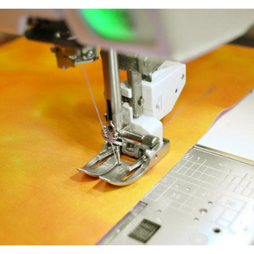 Kráčející patka pro rovné šití, velmi kvalitní patka, která umožní jednoduché sešití větších vrstev materiálů a zabrání posunu materiálů proti sobě. Je určena pro stroje s možností cikcaku 9 mm.