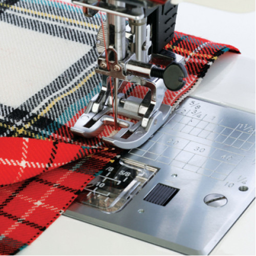 Otevřená patka, díky které i když používáte horní přídavné podávání perfektně vidíte šitý materiál.