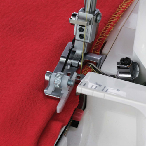 Za pomoci této patky se v jediné operaci lem odstřihne, začistí a prošije "neviditelným" (slepým) stehem. Je určena pro overlocky Janome 204D a 744D.