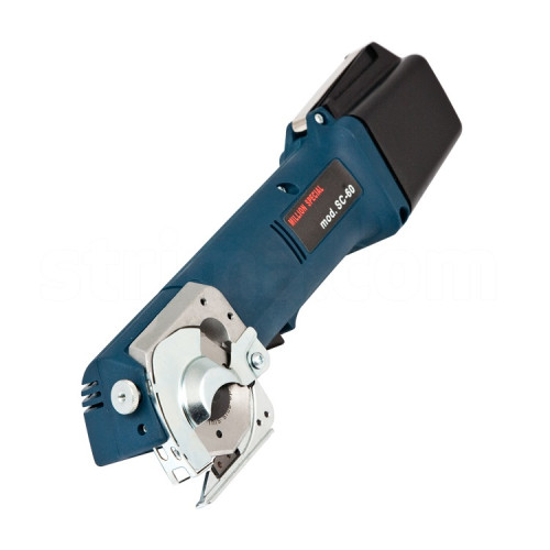 Velmi silná a výkonná řezačka je určena na řezání látky, pleteniny, koberců, atd. Tato řezačka díky baterii umožňuje volný pohyb. Má kovové převody. Velikost nože 60 mm. Pracovní napětí 9,6 VDC, výkon 200 W. Výška řezaného materiálu: látka až 10 vrstev, do výše 12 mm. Váha s baterií 1,14 kg.